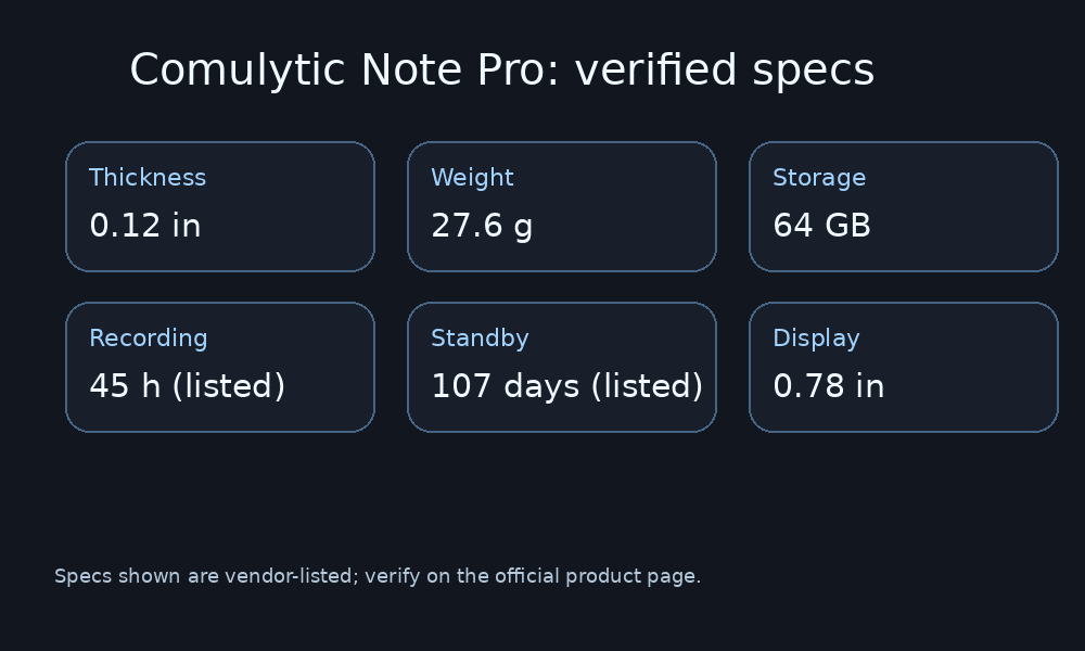 Comulytic Note Pro review: the physical specs you can quote safely