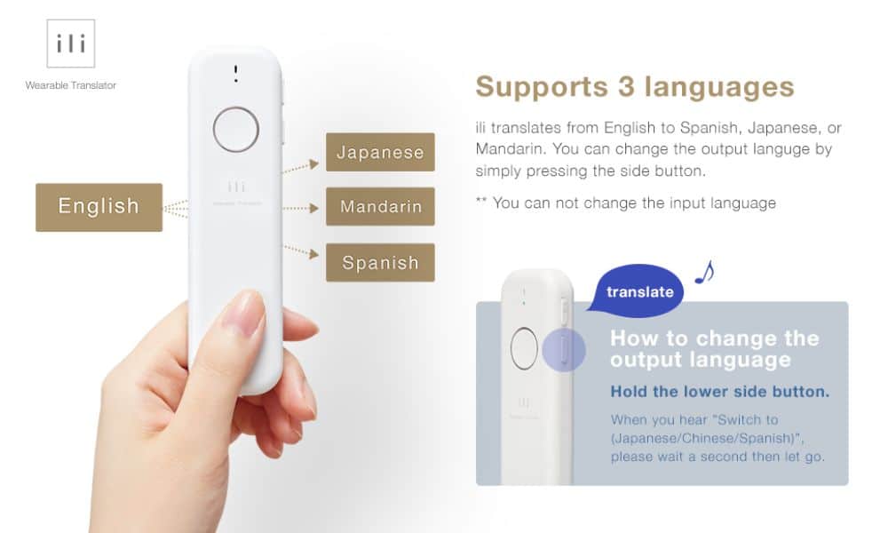 The Logbar ili Voice Translator supports three main languages: